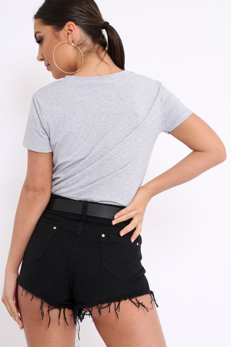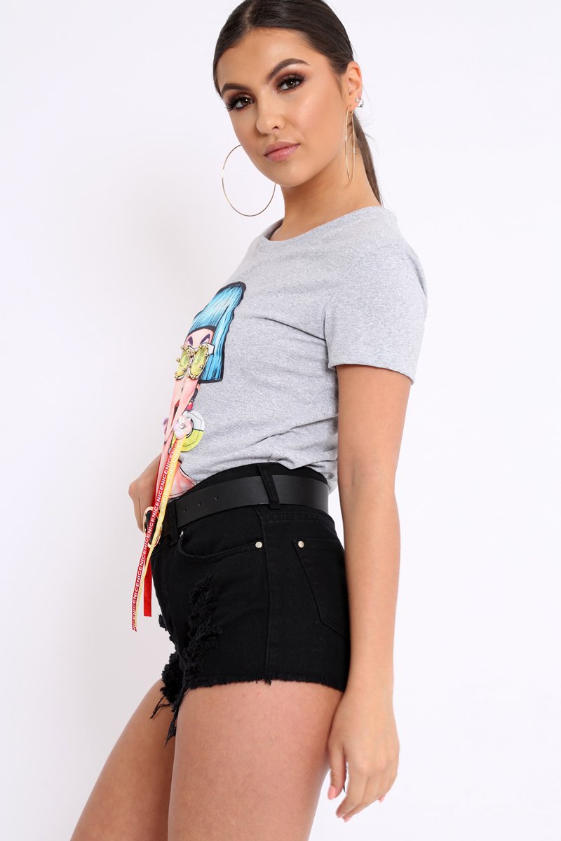 Look Cool AF in our Leacy Grey Crew Neck Girls Face T-Shirt with Tassels, Featuring really cool vibrant graphic print, tassel detailing on earrings and beading. Style with lace up heels for an edgy look!