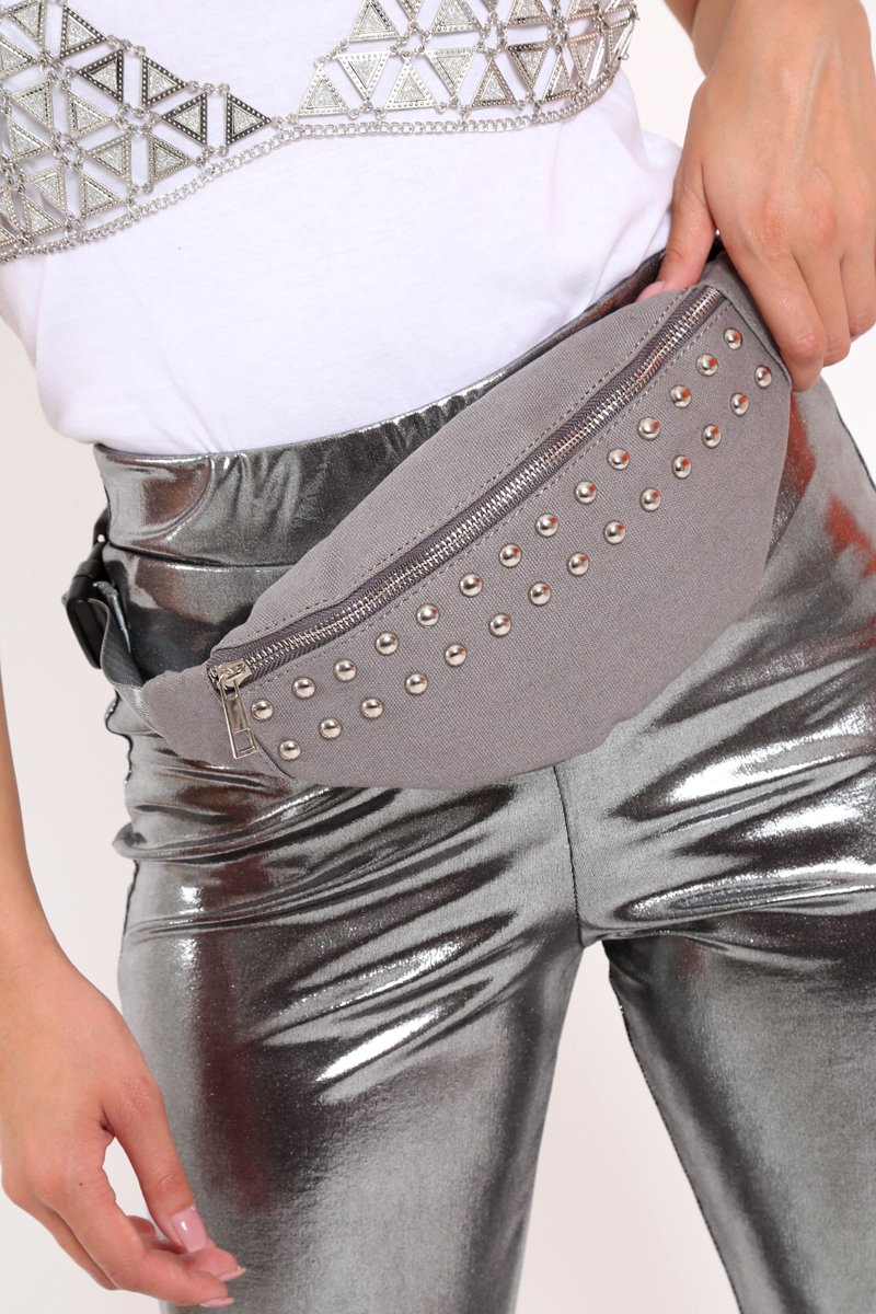 Festival Ready? You will be with our Kamala Grey Double Stud Bum Bag featuring adjustable belt fastening, main zip pouch, inner zip compartment and double row stud detailing!