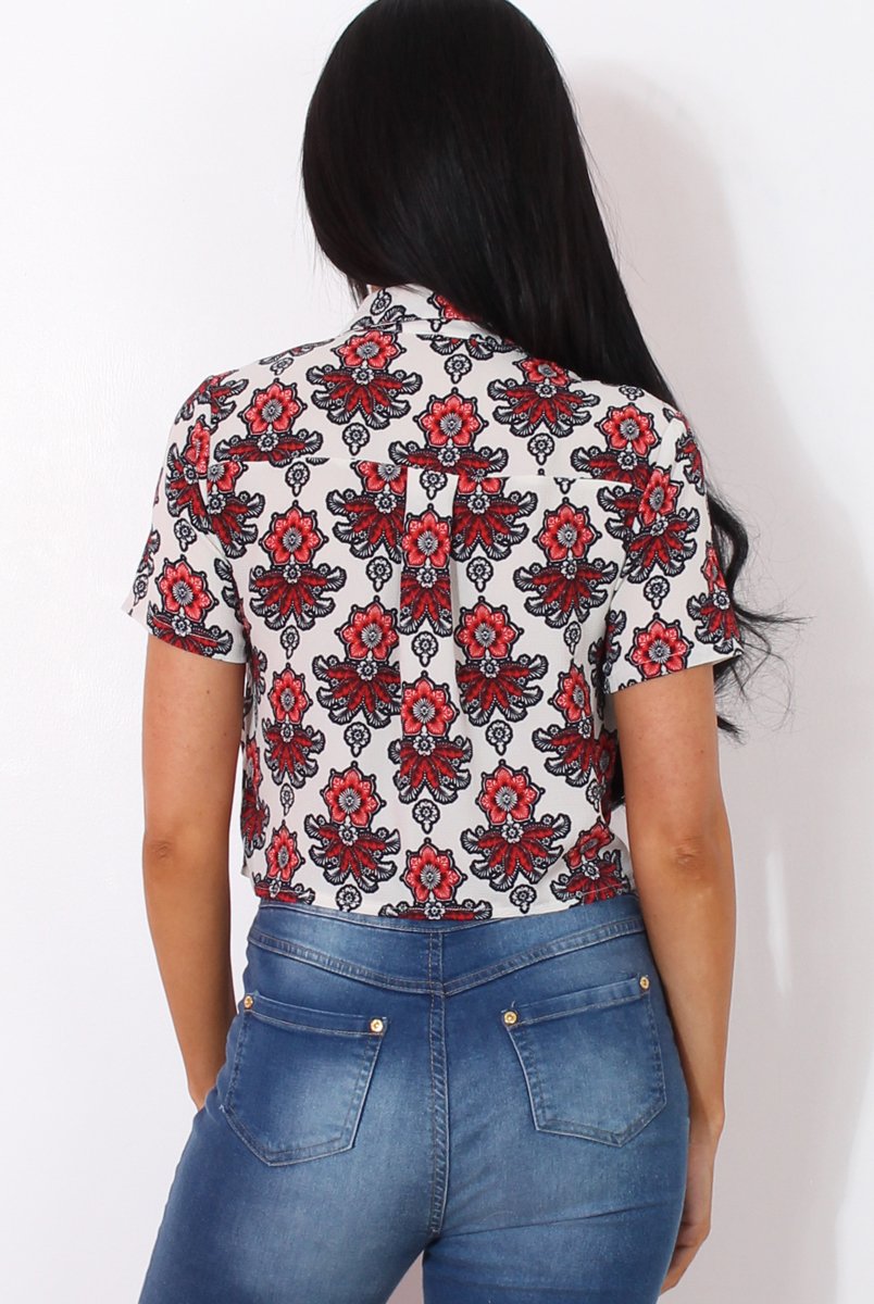 Fern Red Floral Print Crop Shirt