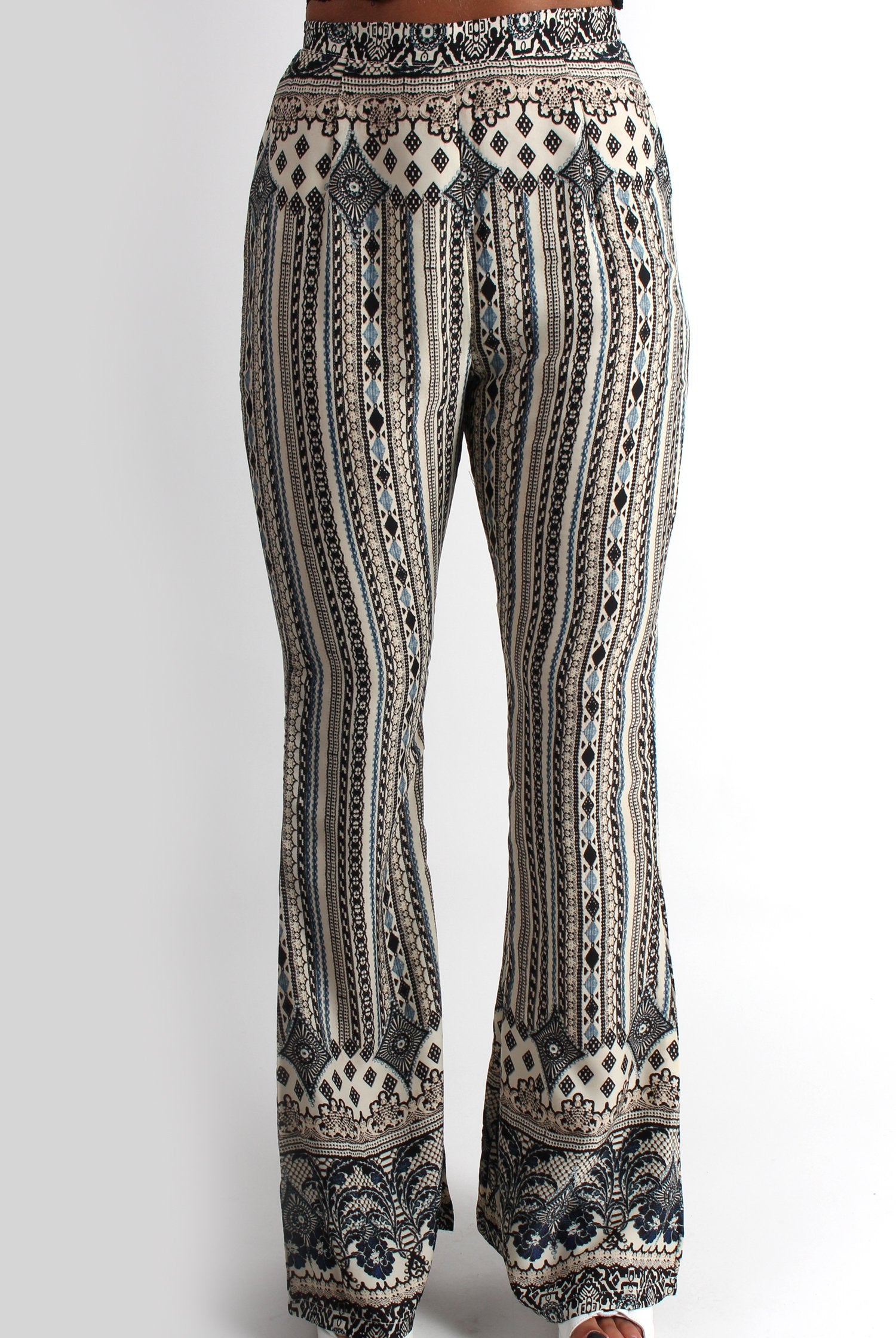 • Festival season is well and truly here. These Marris Paisley Flared Trousers are the start of the perfect outfit. Style this up with a lace crop and some summer sandals and you are ready to go.