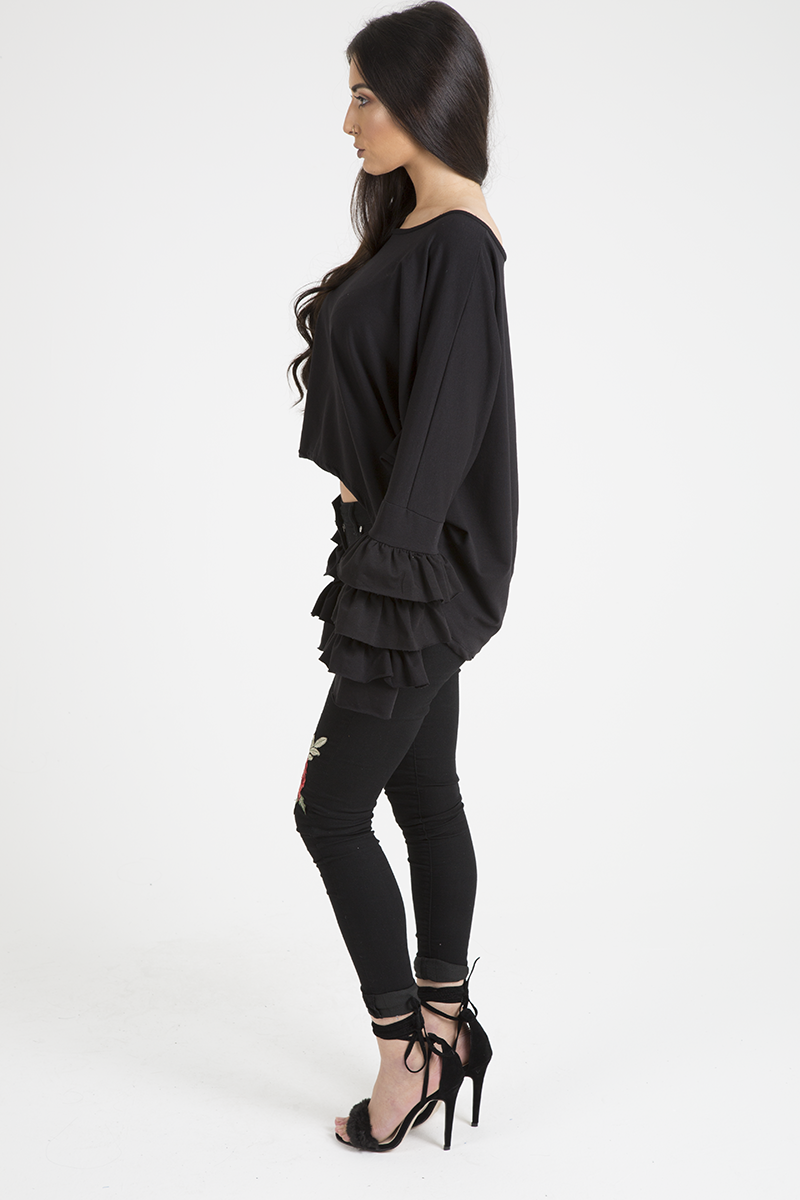 Damn girl.. nice shirt. The Connie Black Oversized Frill Sleeve Top is the ultimate new season piece, team with fishnets, skirt and ankle boots for total chic vibes.