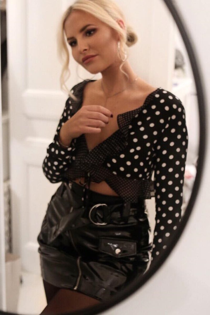 It is all about the deets with the Adanya Black Polka Dot Tie Front Frill Top. Featuring frill tie top, long sleeves with a Polka dot print. Wear with black Rio PU leggings and pair with some killa heel's for some serious style points.