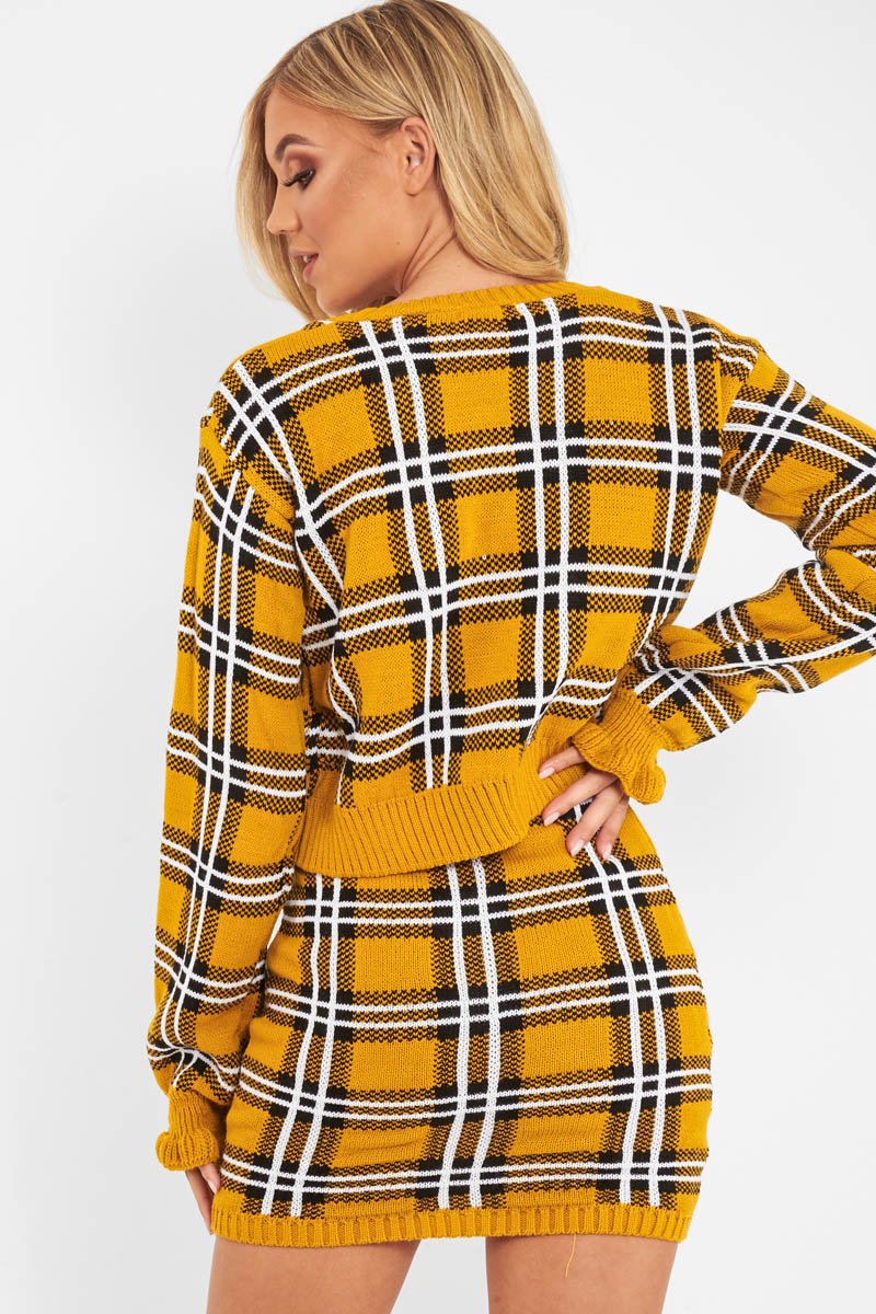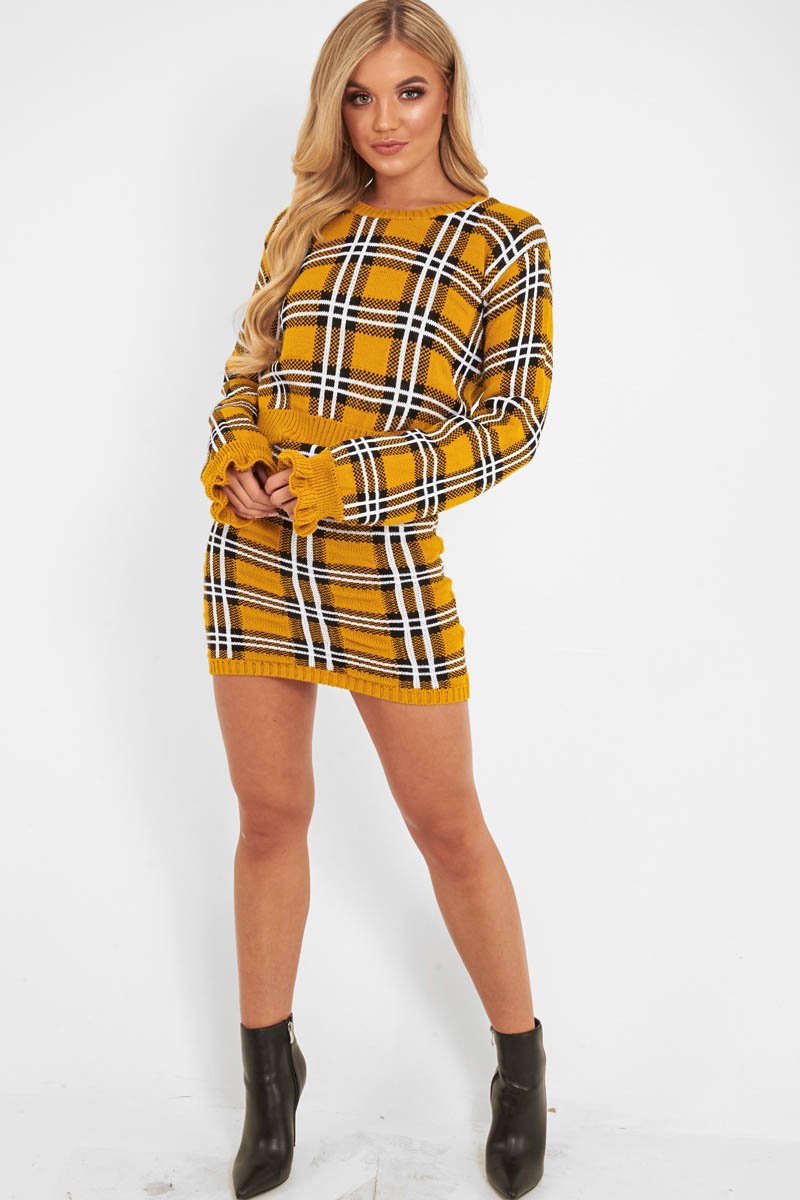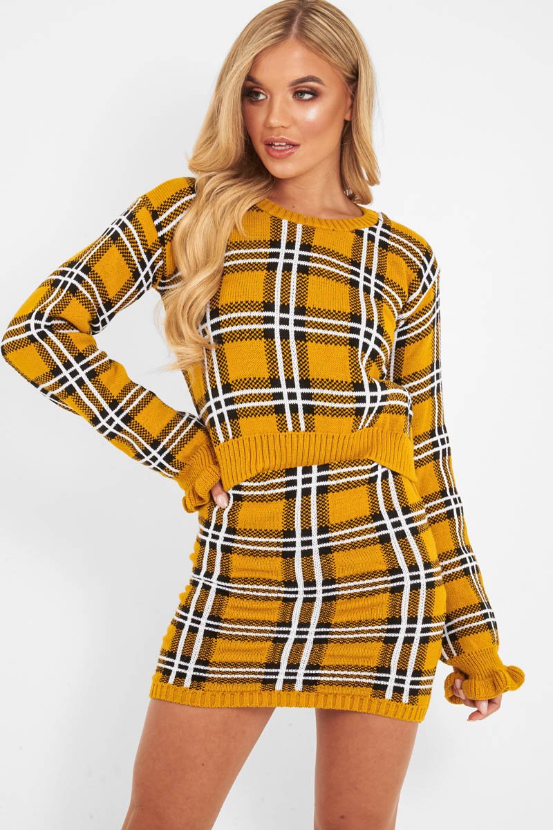 Mustard Tartan Frill Cuff Knit Jumper - Jarae