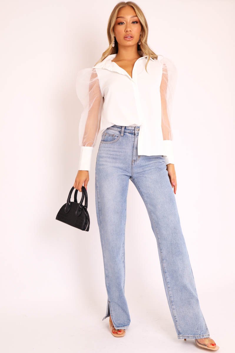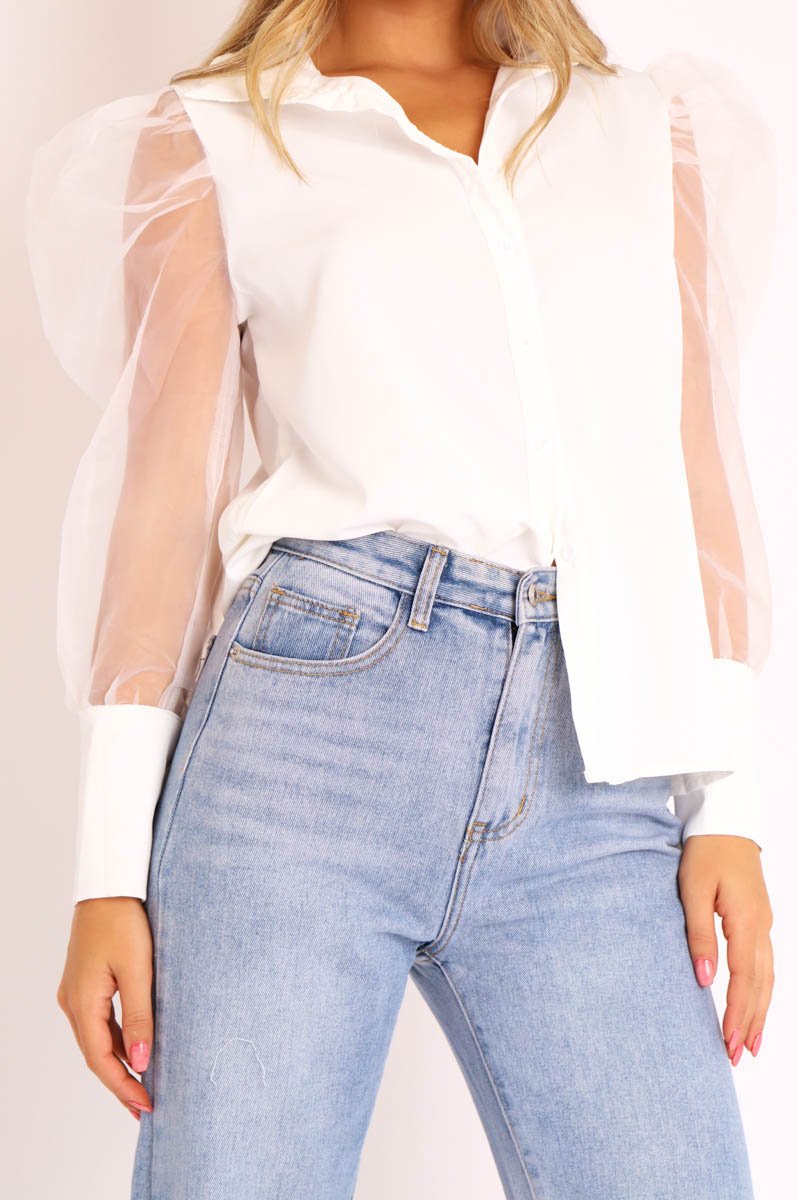 Smart casj dress code? We got you covered in our Fay White Button Front Sheer Long Sleeve Shirt, featuring button front and sheer long sleeves. Style with faux leather trousers and heeled boots.
