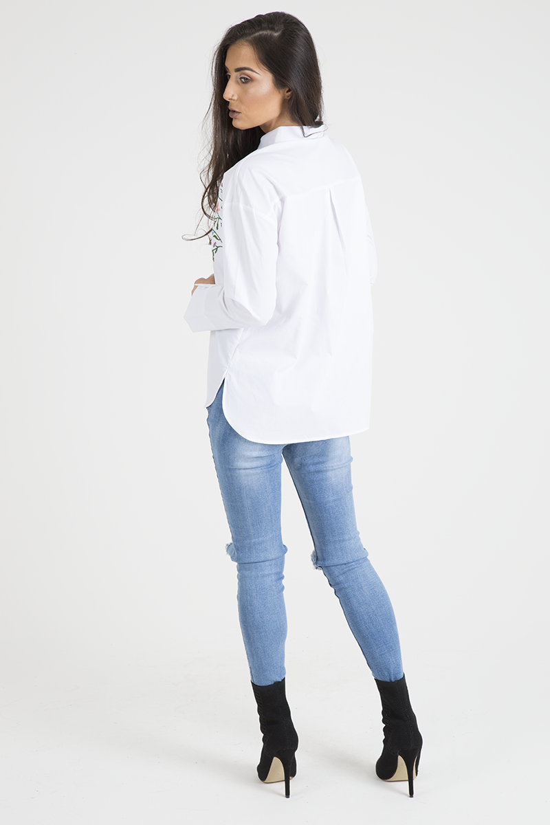 All of the floral feels! The Lara shirt features floral embroidery detail, a collar neck, long sleeves and a button up front. Style this with a cute denim skirt or some ripped jeans for the perfect smart casj look.