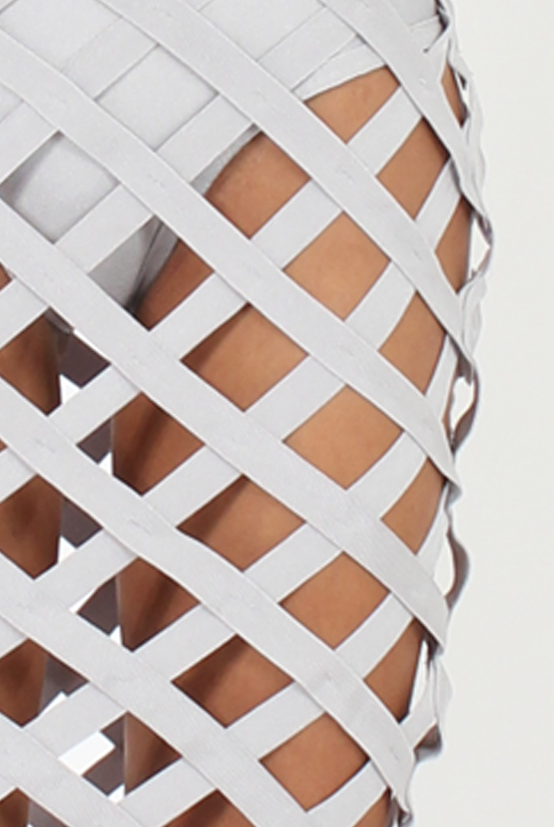 Slay in our showstopping Karla Grey Cage Bandage Skirt. In a feminine mauve, heavyweight, bandage fabric, this criss-cross cage beauty looks perfect teamed with a gorgeous beauty and high heels.