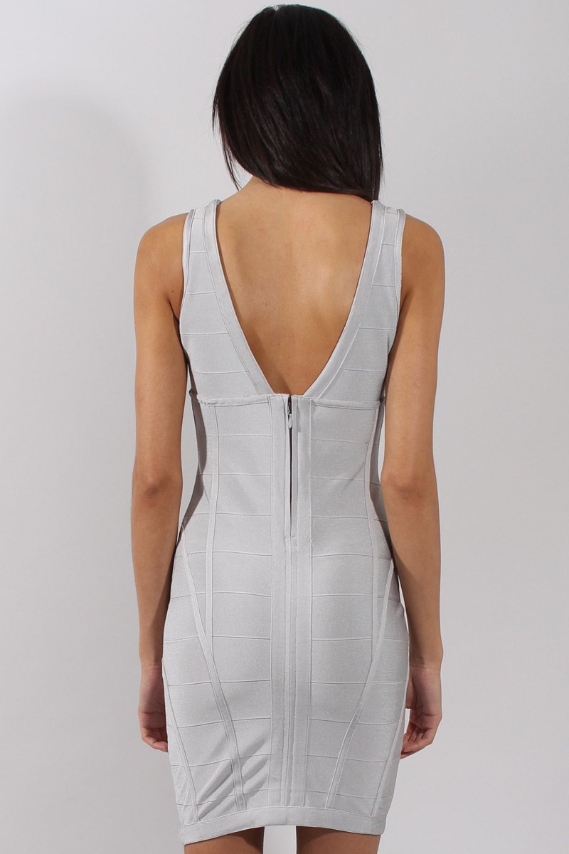 Grey Plunge V Bandage Dress - Kia
