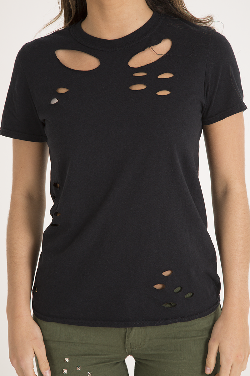 Be a badass with a good ass! The Lacey Laser Cut Top features short sleeves, laser cut detail in a basics style. Perfect this look with some killer distressed jeans, fishnets and a cute choker for all eyes on you.