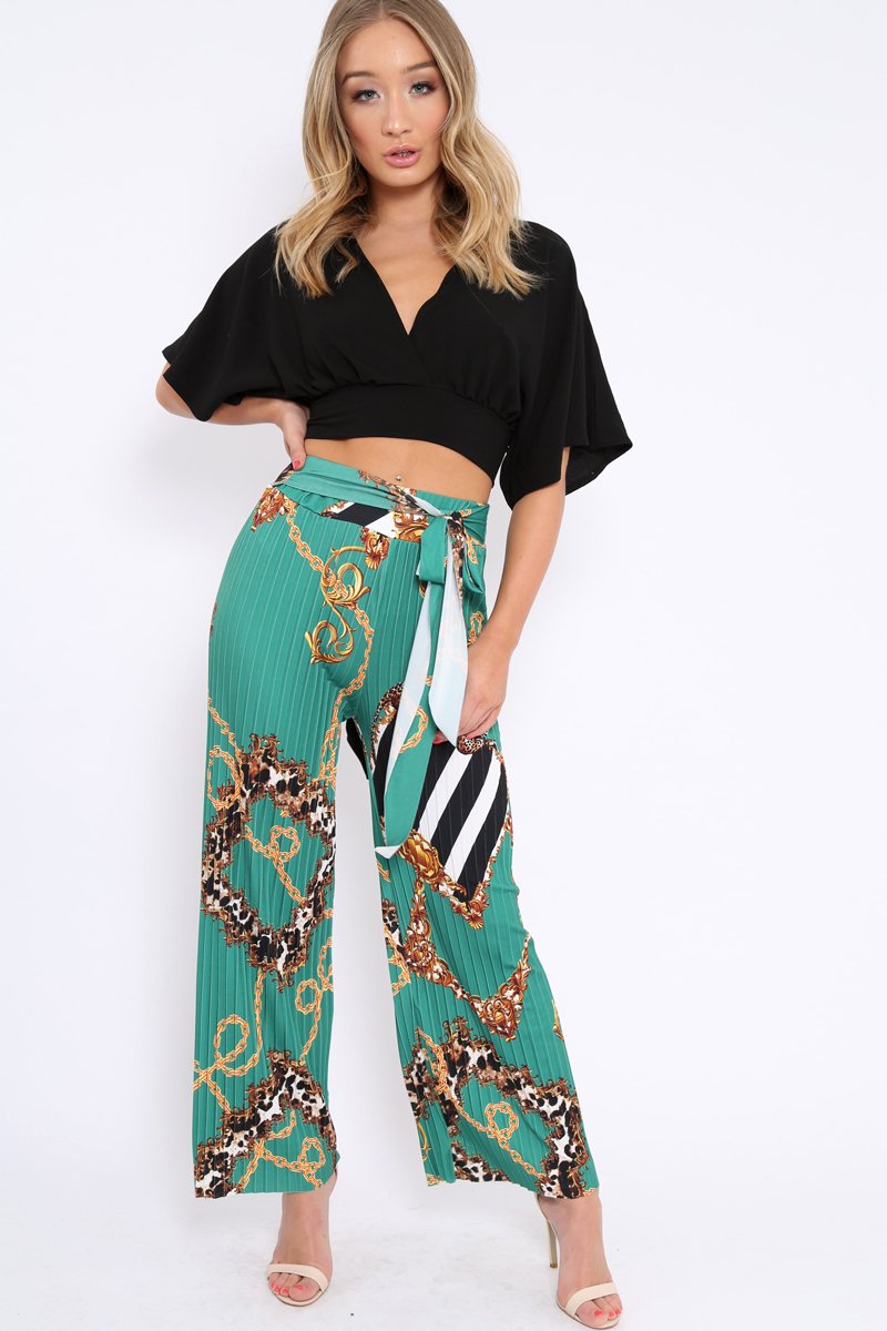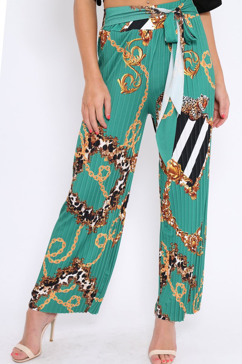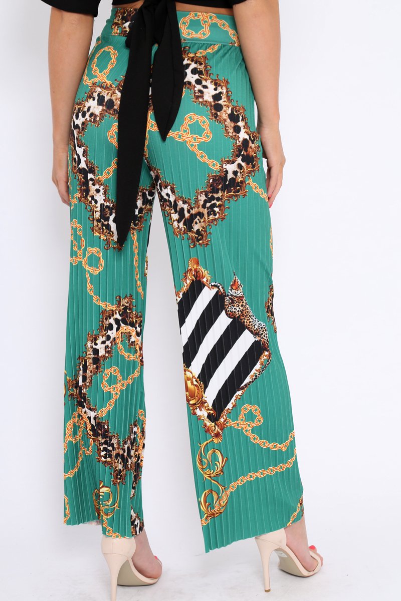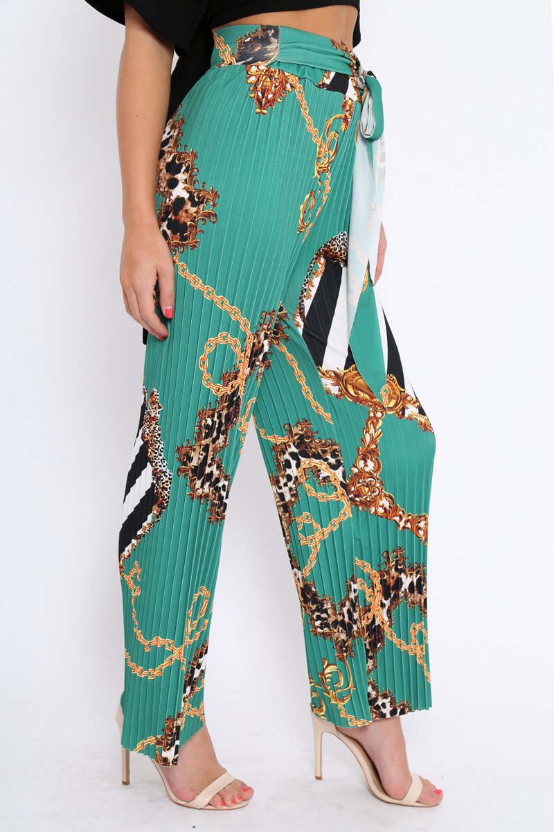 SLAY! You can never go wrong in our Neola Green Chain Pleated Wide Leg Trousers. Featuring tie at waist, chain print style with a pleated all over finish. Style with a hella cute top and barely theres to finish your look girls!