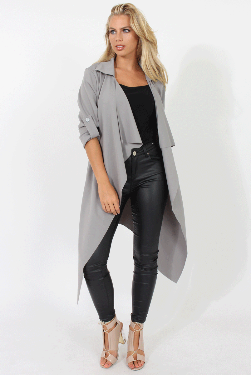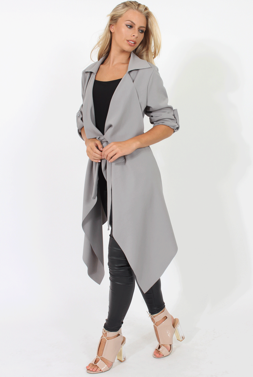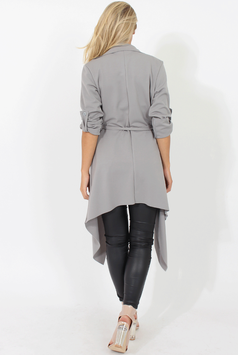 Grey Belted Waterfall Duster Jacket - Aisla