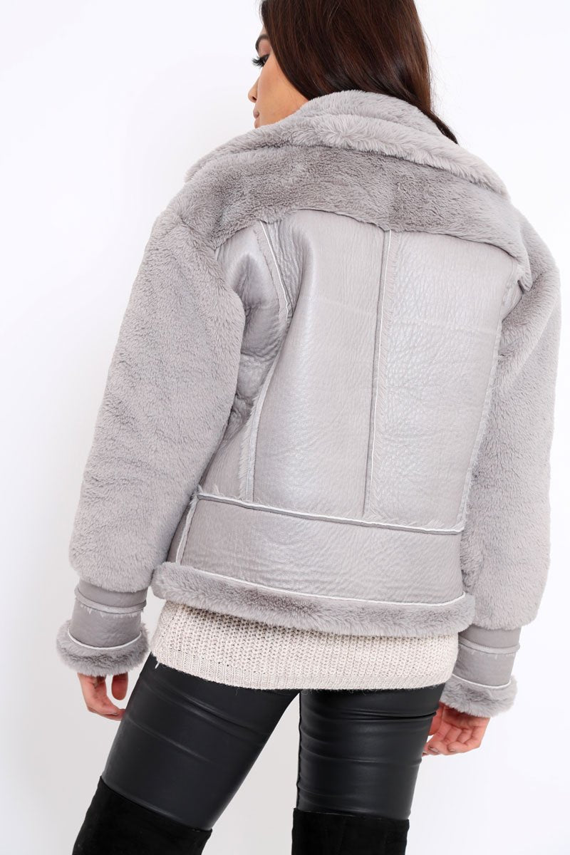 Grey Faux Leather And Fur Jacket - Rhea