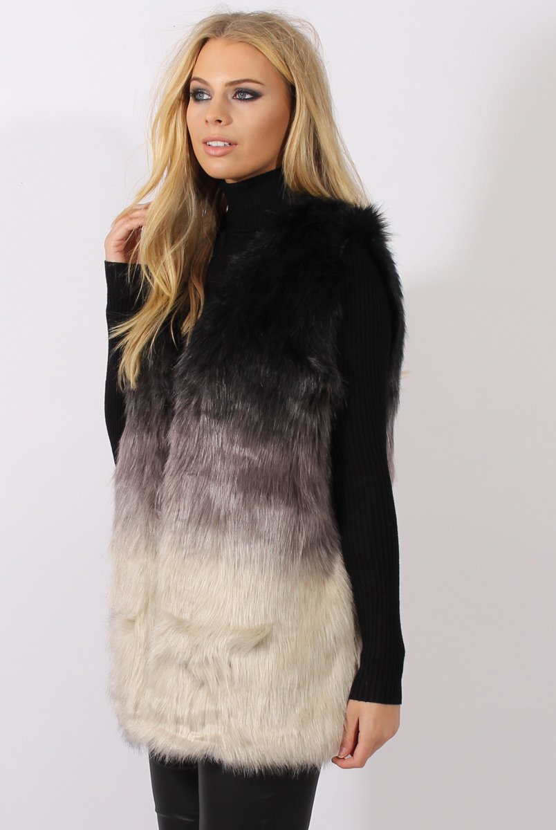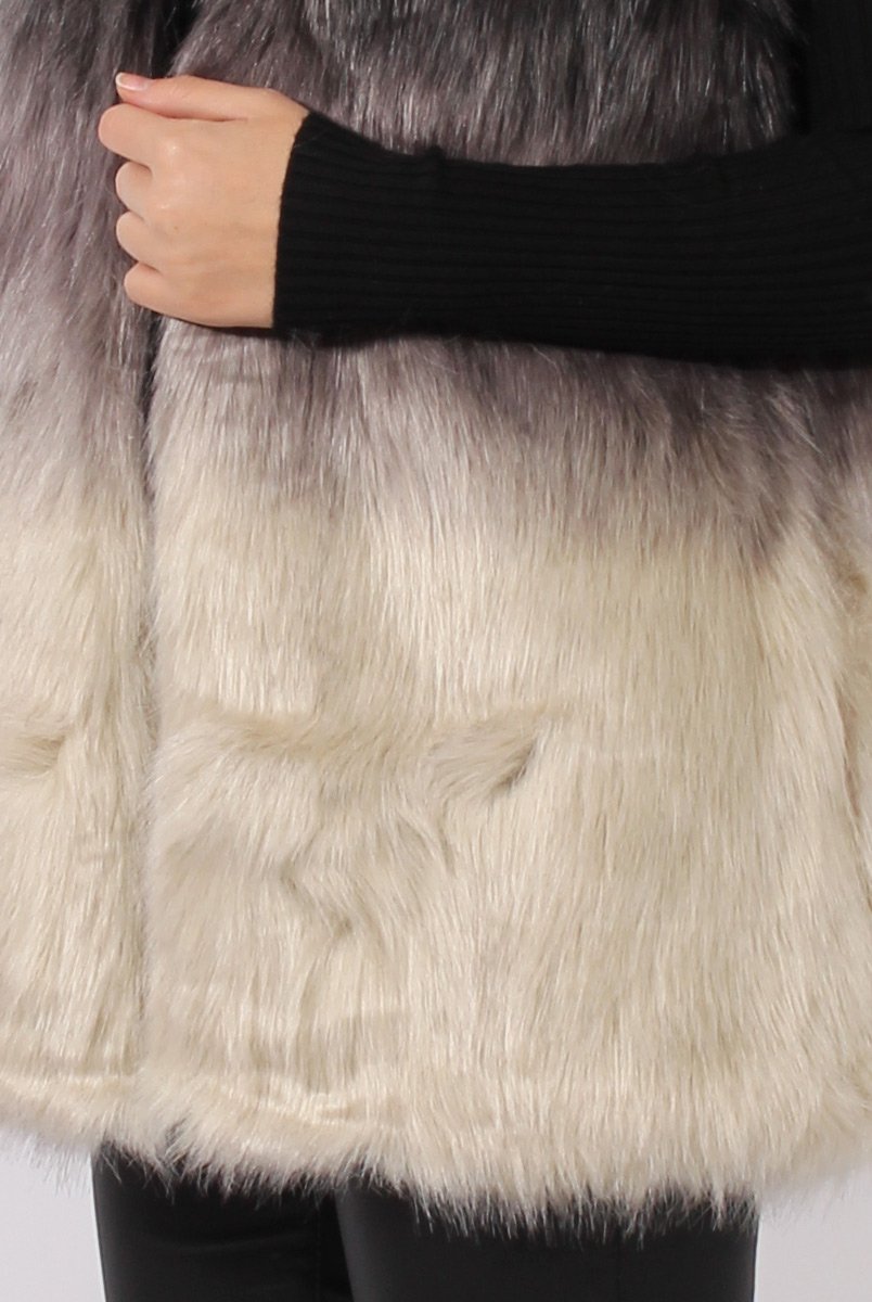Grey Gradient Faux Fur Gilet - Briella