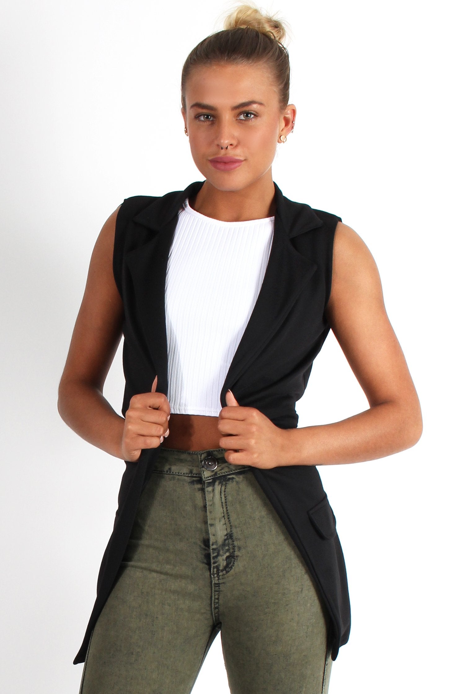 This Lacie Black Sleeveless Jacket is the perfect option to layer up on those cooler summer days. Style it up with some skinny jeans and some platform sandals and your ready to go.