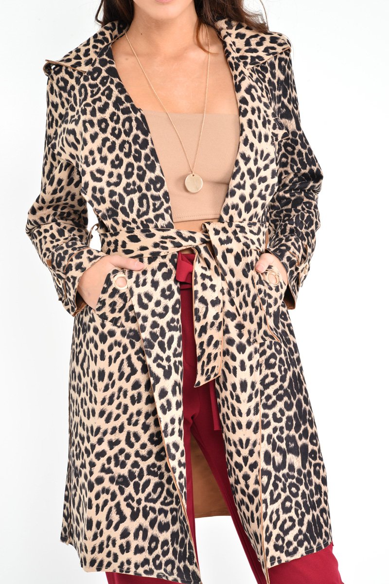 Go wild in the Leliana Leopard Faux Suede Eyelet Detail Trench Coat, complete with eyelet detail, waist belt and trench silhouette. Throw over jeans and a cute jumper for instant glam.