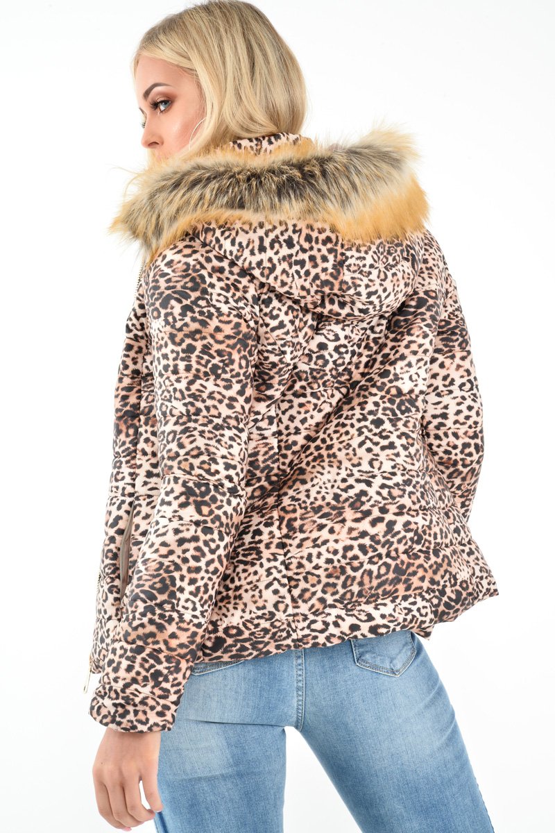 Go wild for the Maia Leopard Print Faux Fur Hood Coat, complete with gold zip detailing, faux fur hood and pockets. Pair with your favourite jeans and boots for a cosy cool look.