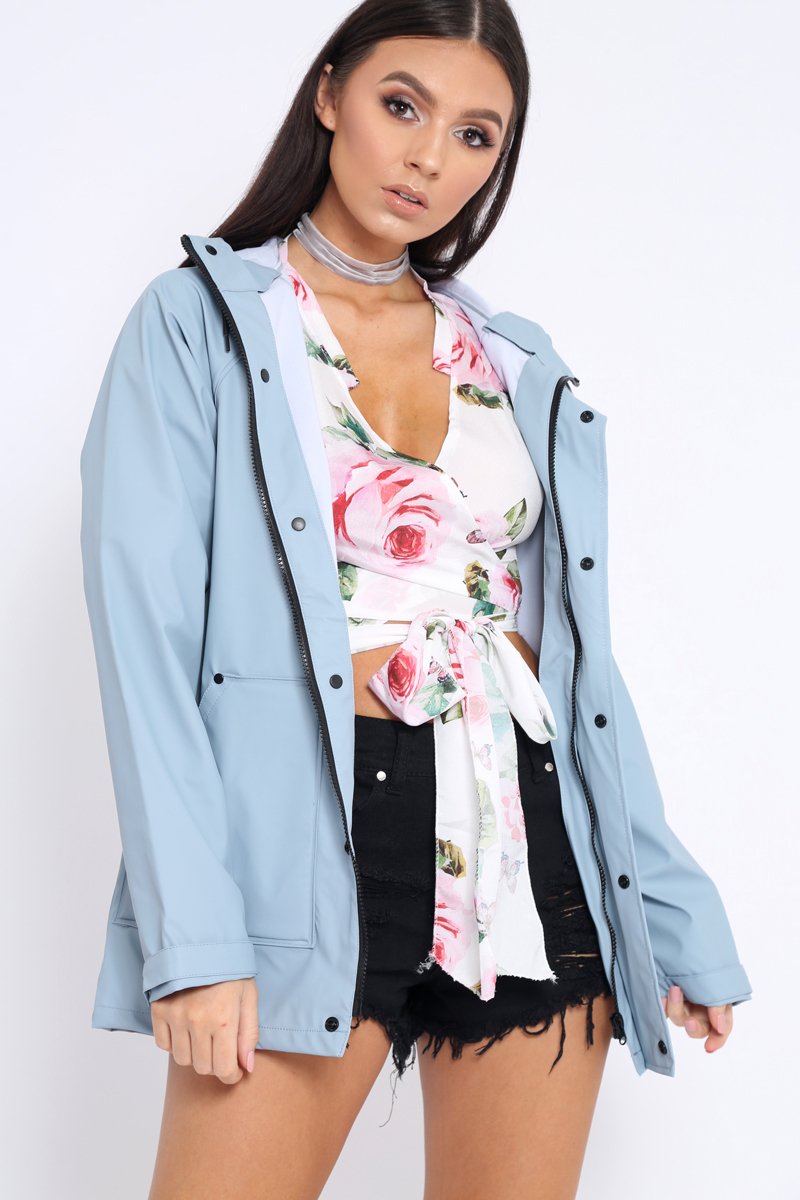 Girl's get all geared up for the festival season in our Fox Light Blue Hooded Rain Jacket. Featuring front zip, two large pockets and a soft waterproof material finish. Style with some mum jeans and trendy trainers for festival vibes!